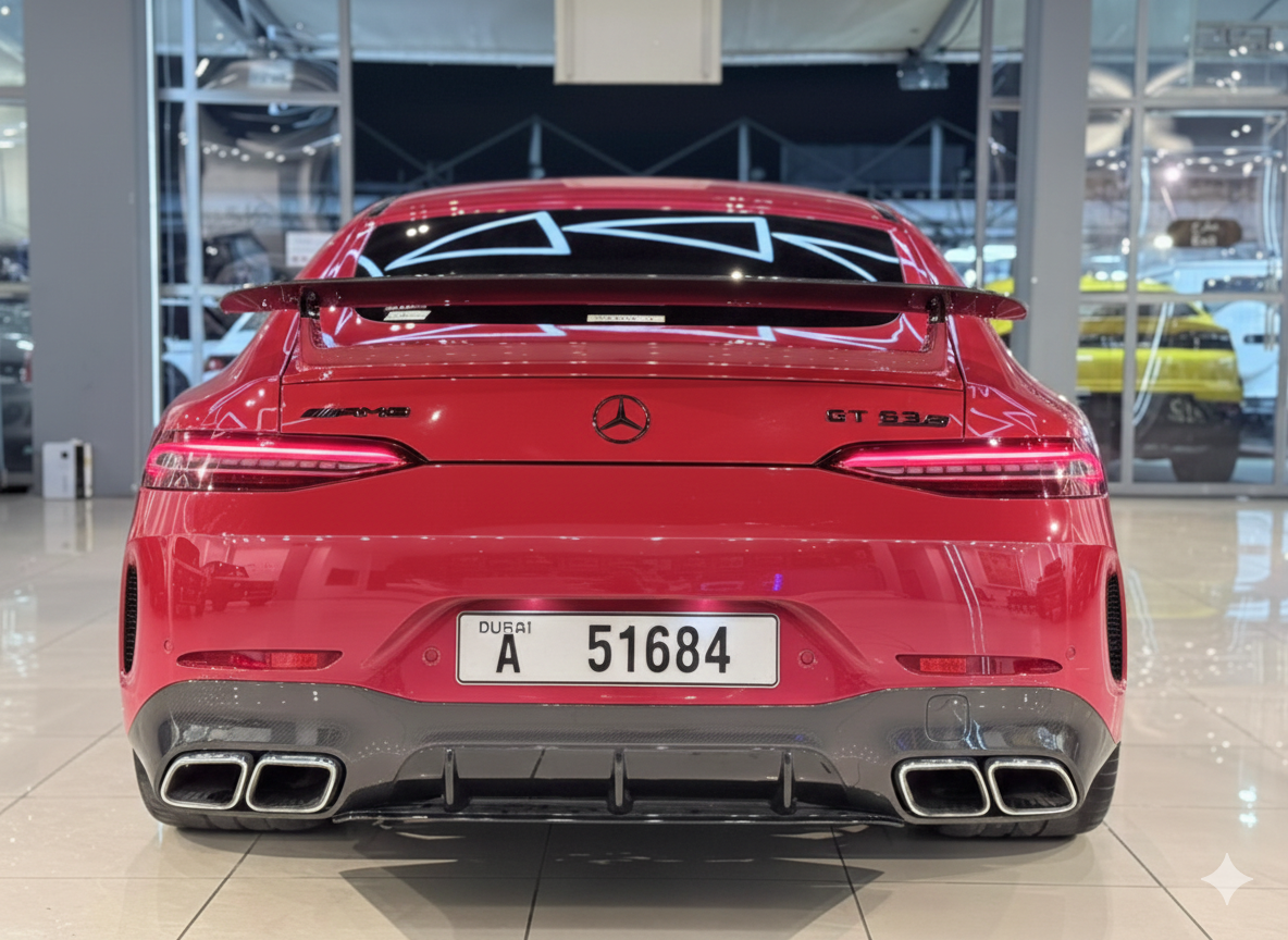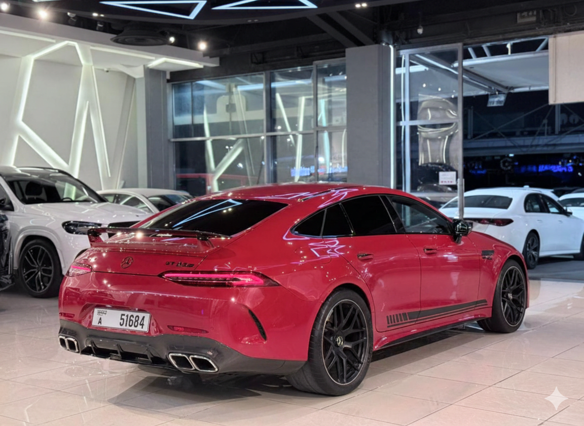The Mercedes‑AMG GT 63 S 4MATIC+ is a high-performance luxury sports sedan that blends supercar-level power with everyday usability and advanced all-wheel drive technology. Doors: 4 (sedan body style) Engine: 4.0 L Twin-Turbo V8 AMG (hand-built) Power: Around 630+ horsepower Acceleration (0–100 km/h): ~3.2 seconds Top Speed: ~315 km/h (varies by spec) Transmission: AMG SPEEDSHIFT 9-speed automatic Drive: 4MATIC+ all-wheel drive for enhanced traction and handling The GT 63 S 4MATIC+ has a muscular yet elegant design with a long hood, aggressive front grille, and wide stance that emphasizes performance and presence. The advanced all-wheel drive system helps deliver explosive acceleration and confident handling in all conditions. Inside, the cabin offers: Premium leather and racing-inspired sport seats Advanced digital cockpit with performance displays High-end materials and luxury finishes Spacious rear seats for a sports sedan This car is ideal for: Drivers who want supercar performance in a 4-door package Sharp handling with ultimate traction Elegant design with cutting-edge tech Daily usability with thrilling power The GT 63 S 4MATIC+ doesn’t compromise — it’s equally at home on a track or a luxury cruise.