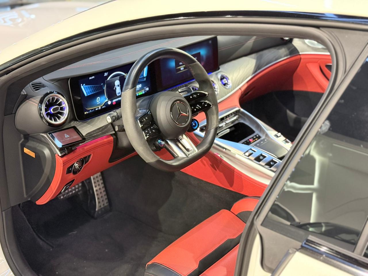 مرسيدس-AMG GT 63 S 4MATIC+ هي سيارة سيدان رياضية فاخرة عالية الأداء تجمع بين قوة خارقة وتقنيات متقدمة في دفع رباعي لتجربة قيادة ديناميكية ومريحة. عدد الأبواب: 4 (تصميم سيدان) المحرك: 8 سلندر سعة 4.0 لتر توين-تيربو من AMG (مصنوع يدويًا) القوة: حوالي أكثر من 630 حصان التسارع 0-100 كم/س: حوالي 3.2 ثوانٍ السرعة القصوى: حوالي 315 كم/س (تقديري) ناقل الحركة: أوتوماتيك 9-سرعات AMG SPEEDSHIFT نظام الدفع: 4MATIC+ رباعي متقدم لتحكم وثبات ممتازين تصميم GT 63 S 4MATIC+ قوي ورياضي مع مقدمة طويلة وشبكة أمامية عدوانية ومظهر عريض يشد الانتباه ويعكس الأداء العالي. نظام الدفع الرباعي المتطور يساعد على تسارع فوري وتحكم واثق في كل الظروف. داخل المقصورة: جلد فاخر ومقاعد رياضية مستوحاة من السباقات شاشات رقمية متقدمة تعرض معلومات الأداء مواد عالية الجودة وتشطيبات فاخرة مساحة مريحة للركاب في المقاعد الخلفية هذه السيارة مثالية لمن يريد: أداء أقرب للسيارات الخارقة مع راحة سيارة سيدان تحكم دقيق وثبات عالي تصميم أنيق مع تقنيات حديثة قدرة يومية مع قوة مثيرة GT 63 S 4MATIC+ لا تتنازل عن الأداء — فهي قوية على الحلبة ومريحة في الرحلات الفاخرة.
