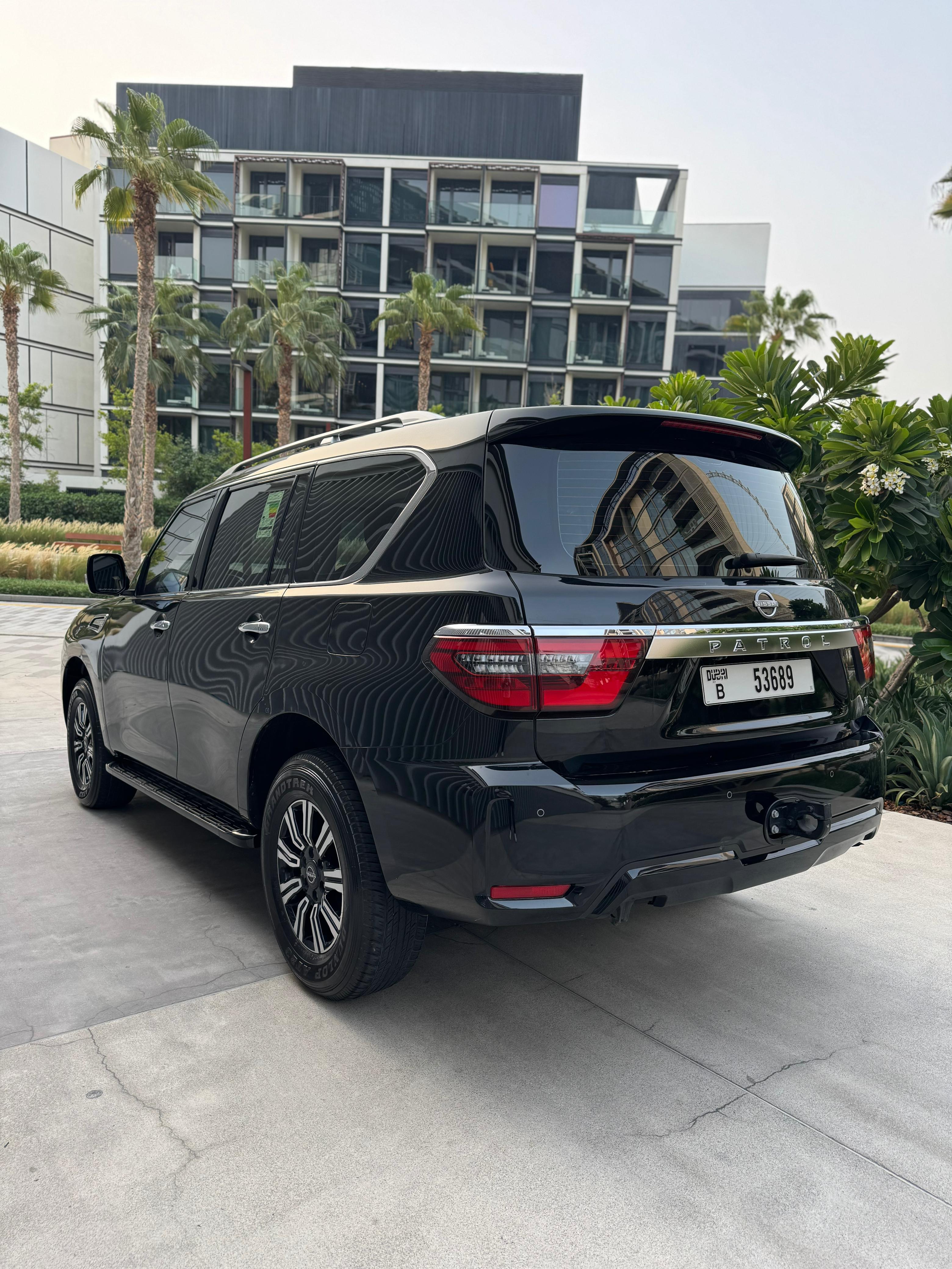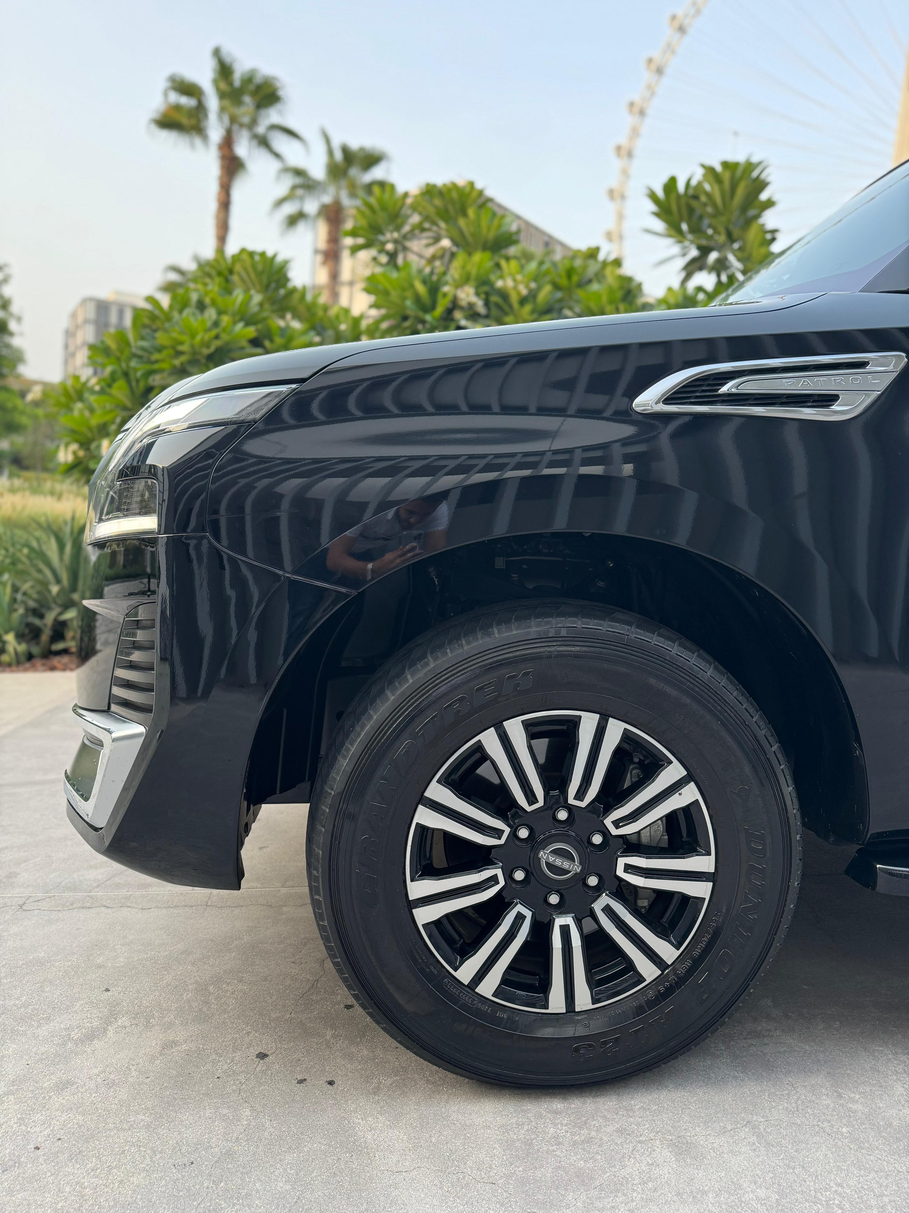 Nissan Patrol Titanium 2024 Model Year: 2024 Key Features: 3D Surround View Camera Memory Front Seats Parking Assist Digital Head-Up Display (HUD) Temperature-Controlled Seats Built-in GPS Navigation Panoramic Sunroof Front and Rear Parking Sensors Steering Assist Tinted Windows Why Rent the Nissan Patrol Titanium? The 2024 Nissan Patrol Titanium is a premium full-size SUV offered by Easy Rent Car Rental. This 5-door vehicle comfortably seats up to 7 passengers and accommodates 5 medium-sized suitcases. It combines powerful performance with high-end features, making it an excellent choice for family trips, business travel, or off-road adventures — all in refined comfort and style. Equipped with advanced driver-assist systems and luxurious amenities, the Patrol Titanium ensures a smooth, safe, and enjoyable driving experience.