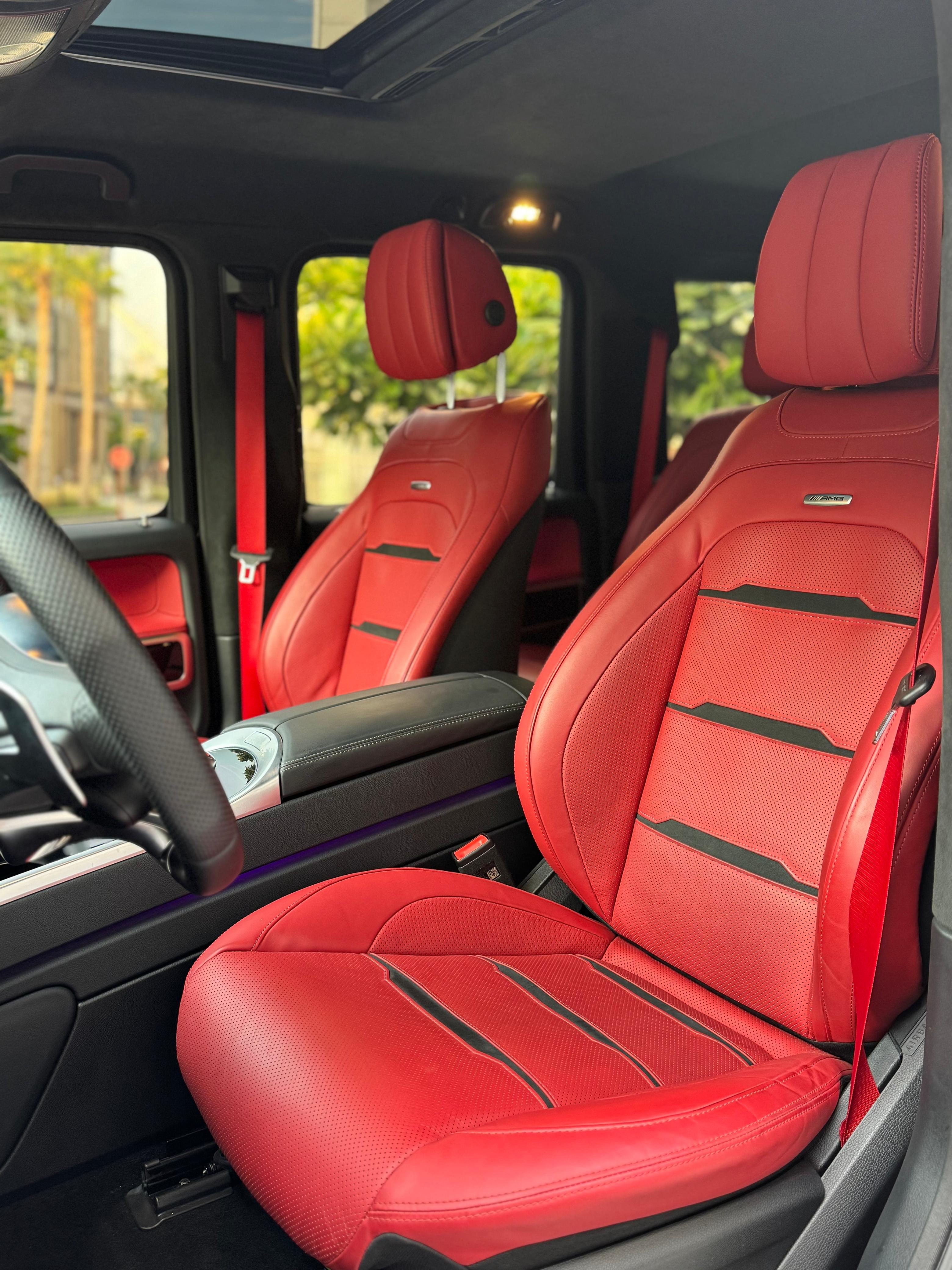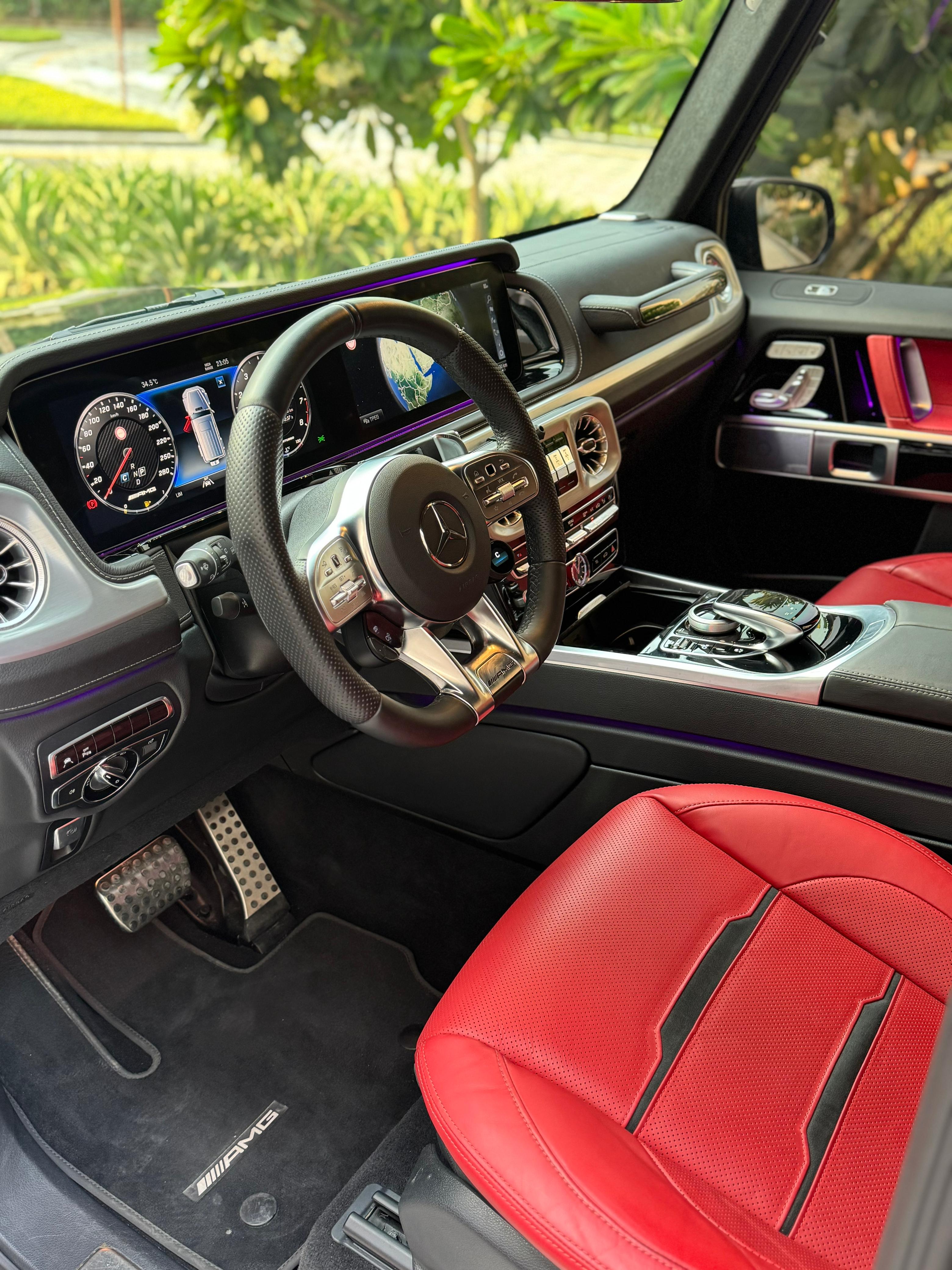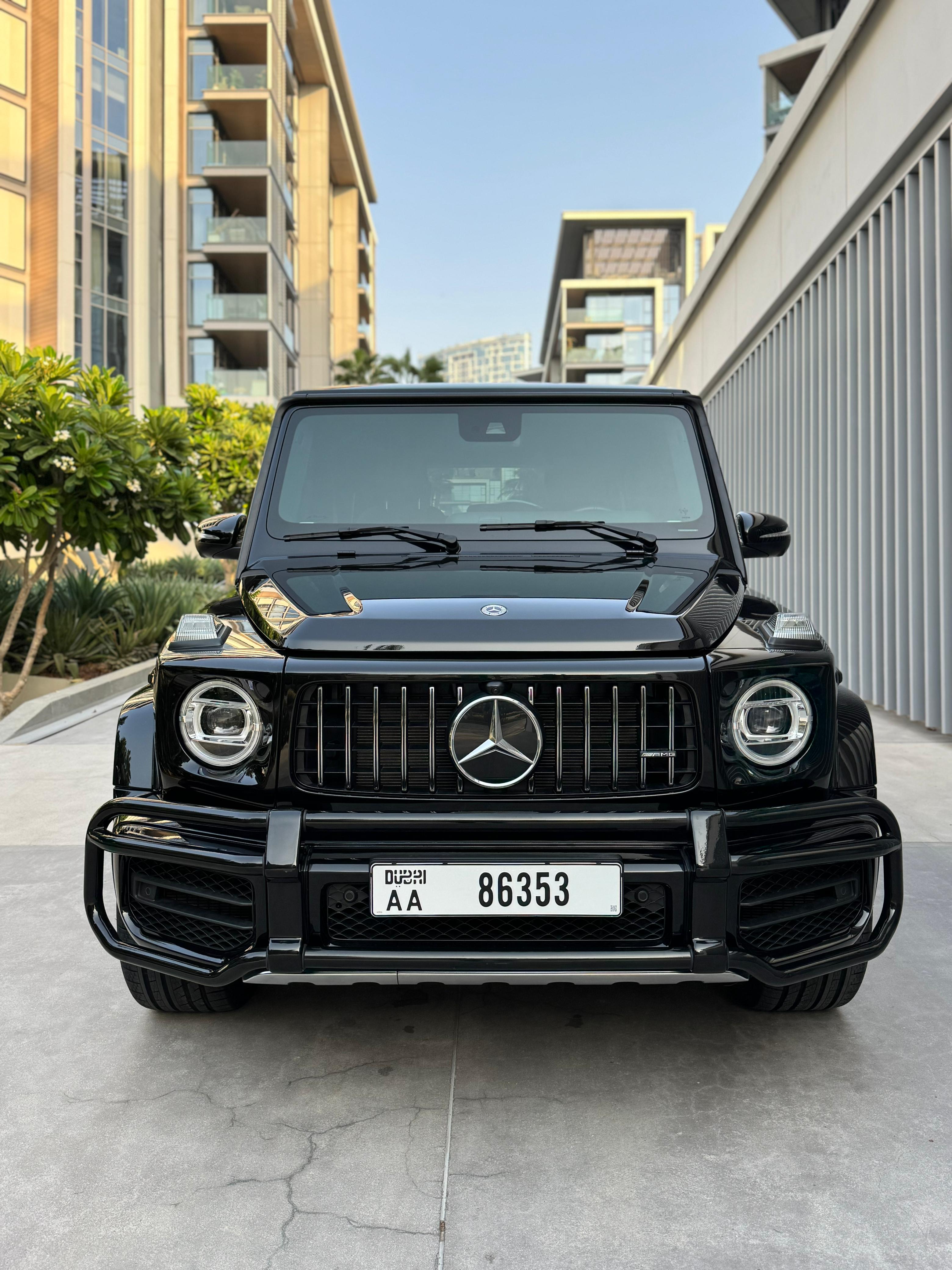 Mercedes-Benz AMG G63 Double Night Package – Model Year 2023 This luxury SUV features four doors and comfortably accommodates up to five passengers, along with space for two medium-sized bags. Specifications: 3D Surround Camera Memory Front Seats Parking Assist Temperature-Controlled Seats Built-in GPS Navigation Panoramic Sunroof Parking Sensors Steering Assist Tinted Windows Paddle Shifters (Triptronic) Why Rent the Mercedes-Benz AMG G63 Double Night Package? Offered by Hi Boss Car Rental, the 2024 Mercedes-Benz AMG G63 Double Night Package combines bold design with cutting-edge technology and exceptional performance. Whether you're seeking luxury, power, or presence, this premium SUV delivers a driving experience that's both commanding and comfortable
