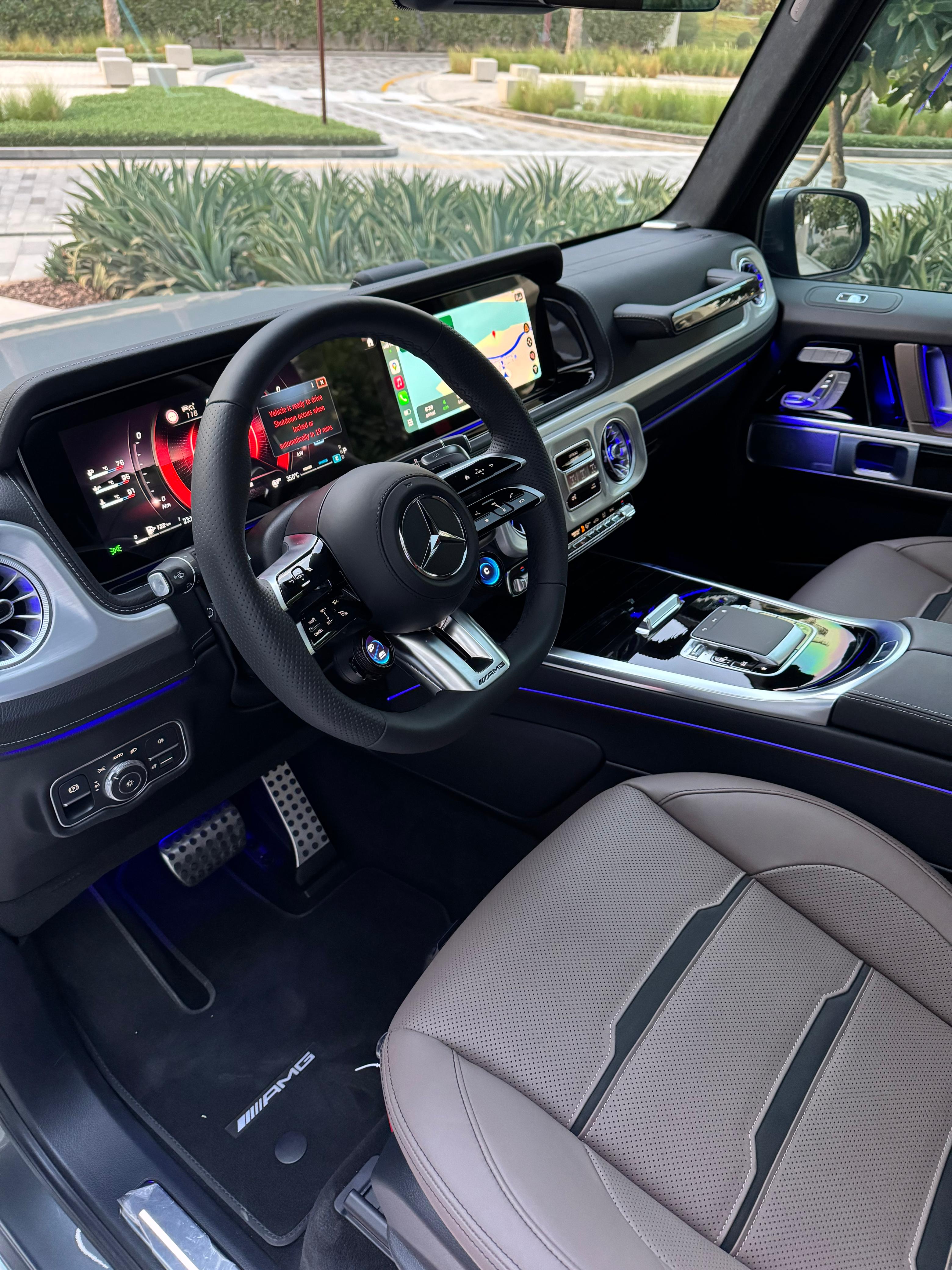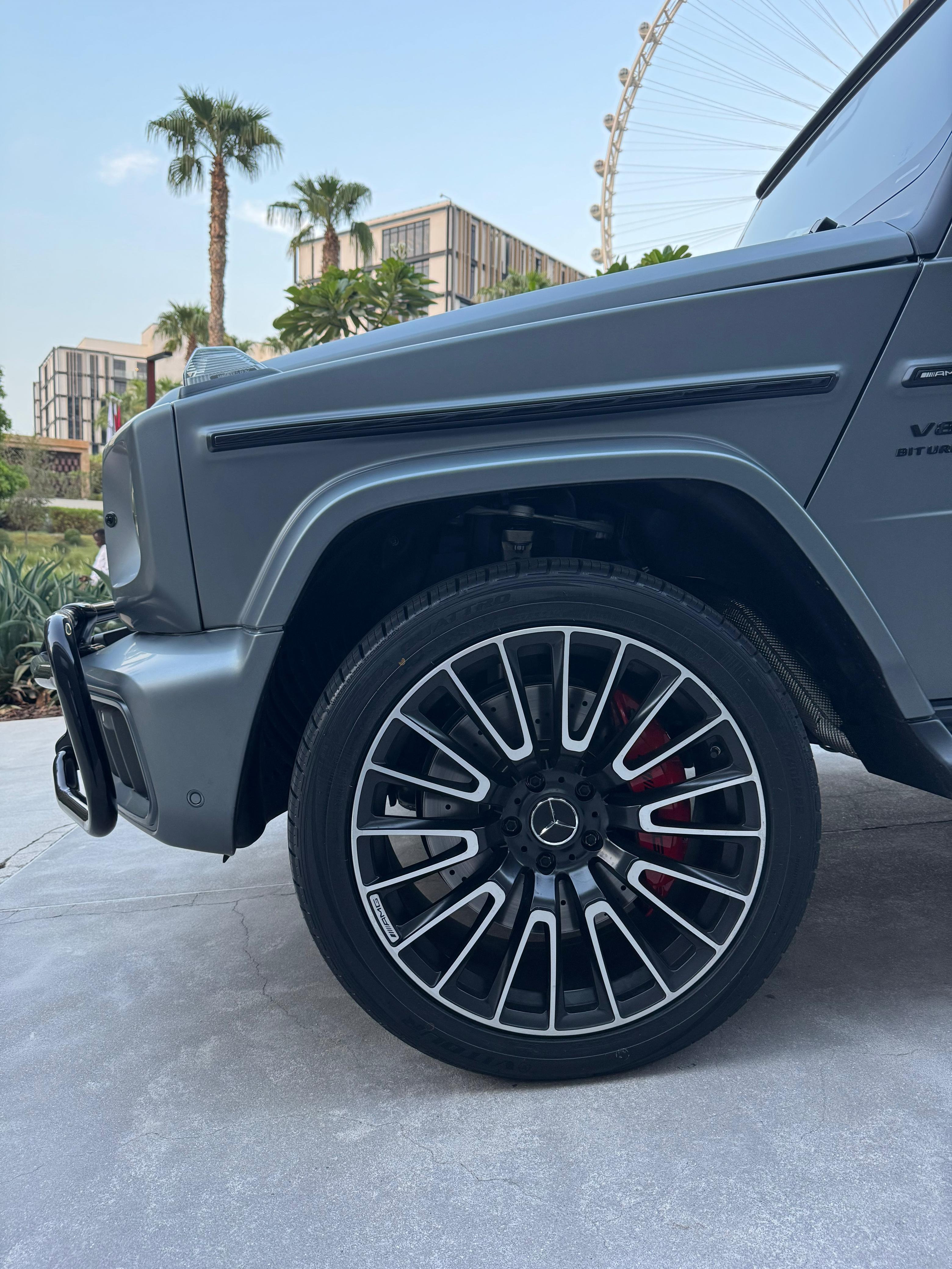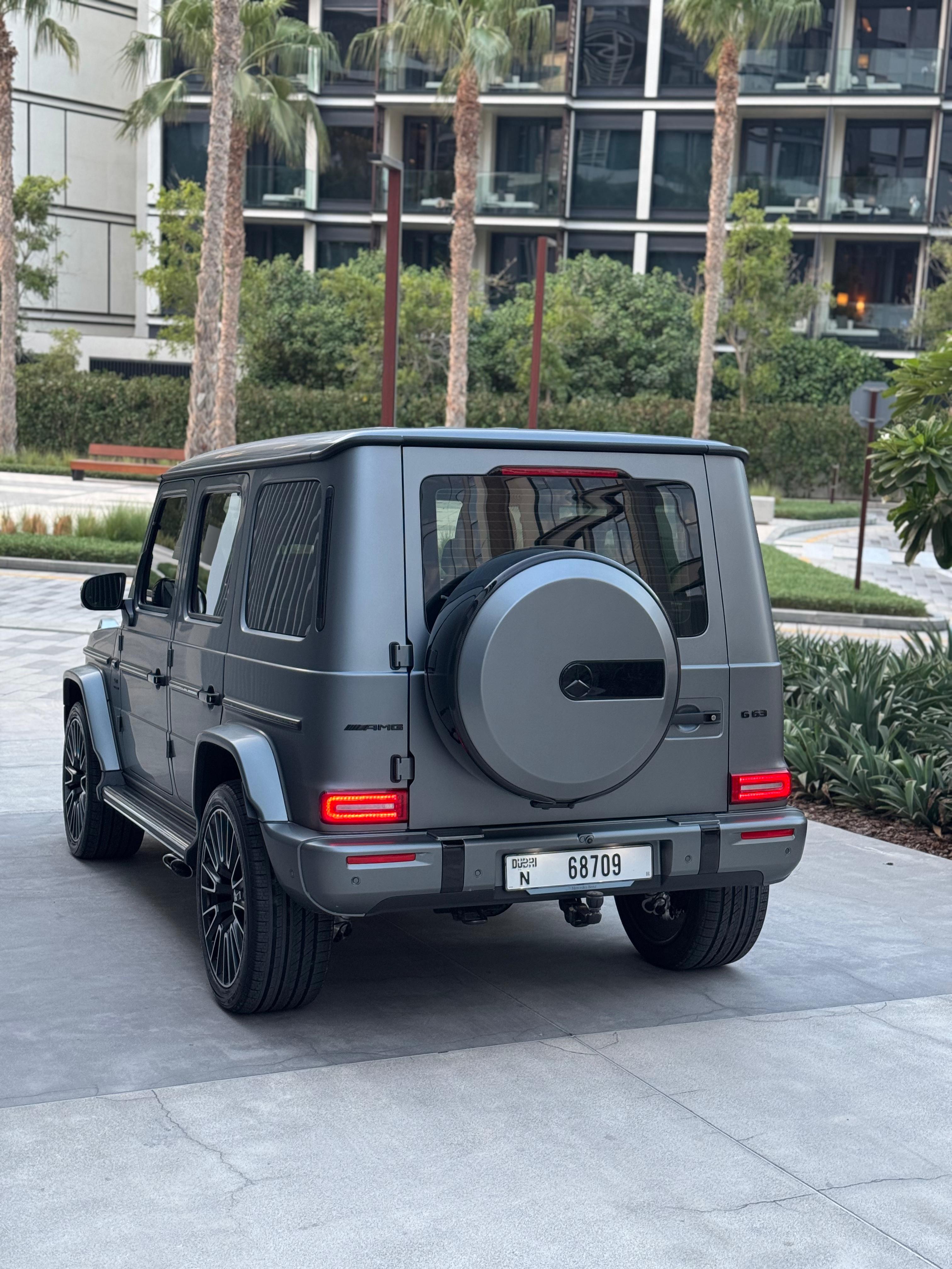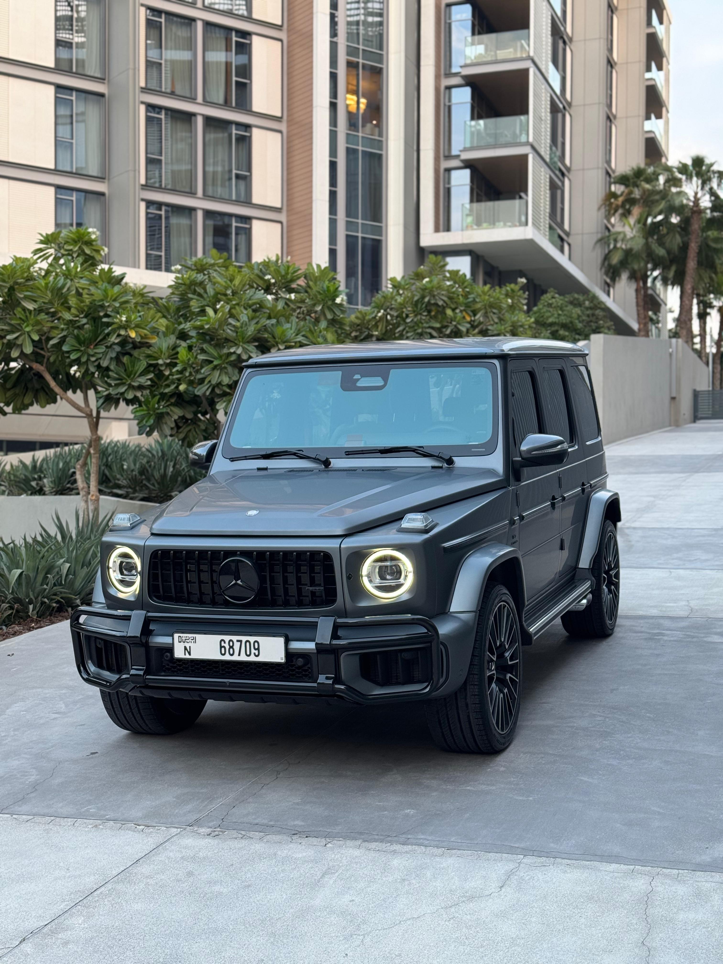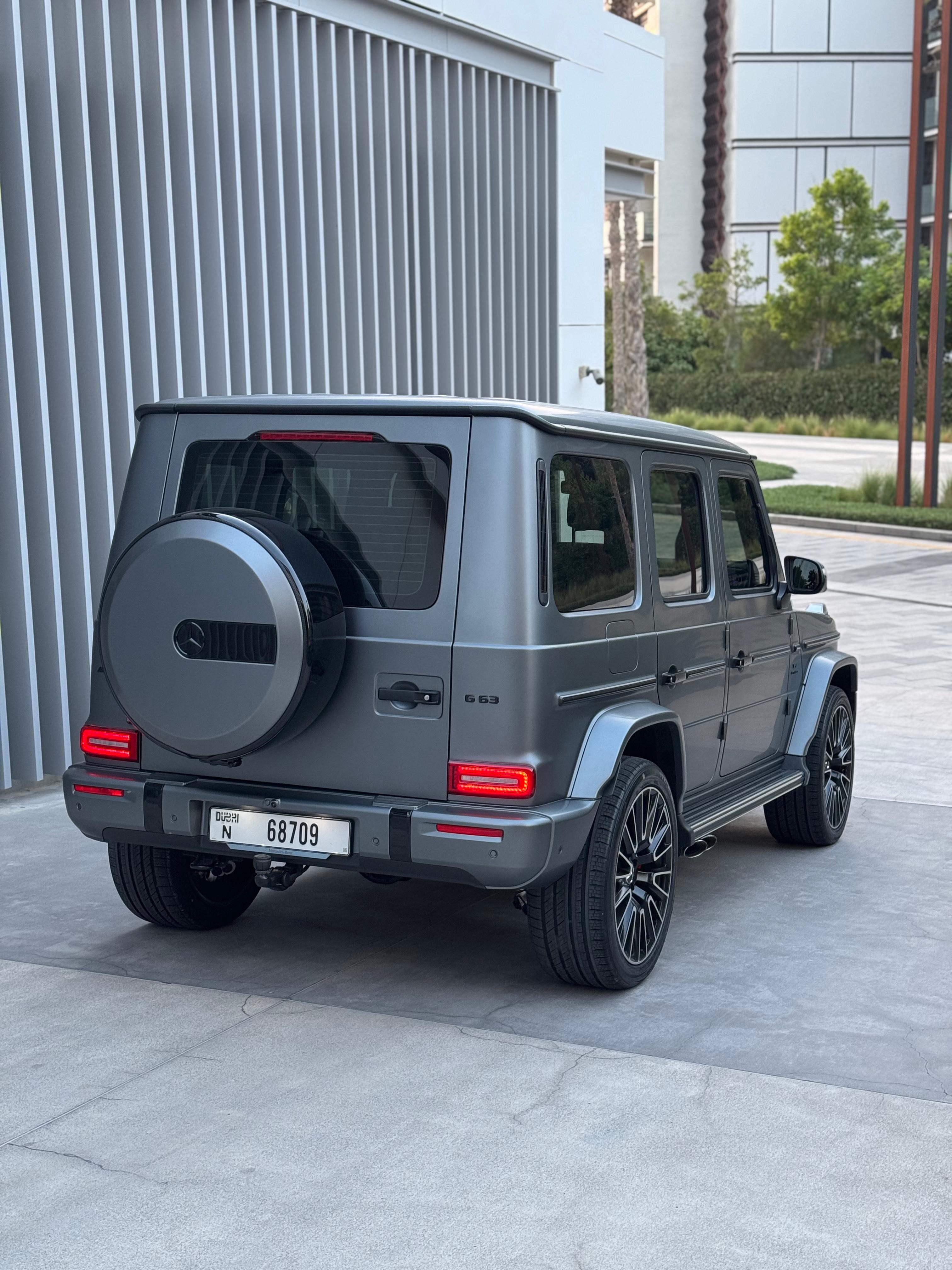 ✨ Exterior Design The G-Wagen continues to preserve its iconic boxy silhouette, now enhanced with modern updates such as a redesigned front grille, refreshed LED headlights and taillights, silver-finished brakes, and a bold AMG emblem on the hood. Dimensions remain imposing: 4.873 m long, 1.984 m wide, 1.971 m tall, with a total weight of around 2,640 kg. ⚙️ Power & Performance Under the hood lies a 4.0-liter AMG V8 biturbo engine paired with a mild hybrid system (ISG), producing 577 hp and 627 lb-ft of torque, complemented by an additional 20 hp and 148 lb-ft of electric boost at low revs. Power is delivered through a 9-speed AMG Speedshift automatic transmission and distributed via the 4MATIC all-wheel drive system, featuring three lockable differentials for superior off-road performance. Thrilling Performance Accelerates from 0–60 mph in just 4.2 seconds (0.3s quicker than the previous generation). Electronically limited top speed of 137 mph (219 km/h). 🚗 Suspension & Driving Dynamics Equipped with the AMG Active Ride Control hydraulic suspension, the G63 offers greater stability, precision, and comfort both on paved roads and rugged terrain. The result: sharper handling, reduced body roll, and a more confident driving experience compared to its predecessor. 🛋️ Interior & Technology Inside, luxury takes center stage with dual 12.3-inch displays for the digital cockpit and the MBUX infotainment system, blending tactile physical controls with touch functionality. The Manufaktur Interior Package Plus enhances the cabin with: Nappa leather upholstery with heated and ventilated seats Polished metal accents An elevated sense of refinement and exclusivity Build quality is solid inside and out, with excellent noise isolation and minimal vibrations. ⛽ Efficiency & Fuel Economy Despite its immense power, efficiency remains modest: Around 14–15 mpg combined (~15 L/100 km). Requires premium unleaded fuel. Fuel tank capacity: approx. 100 liters.